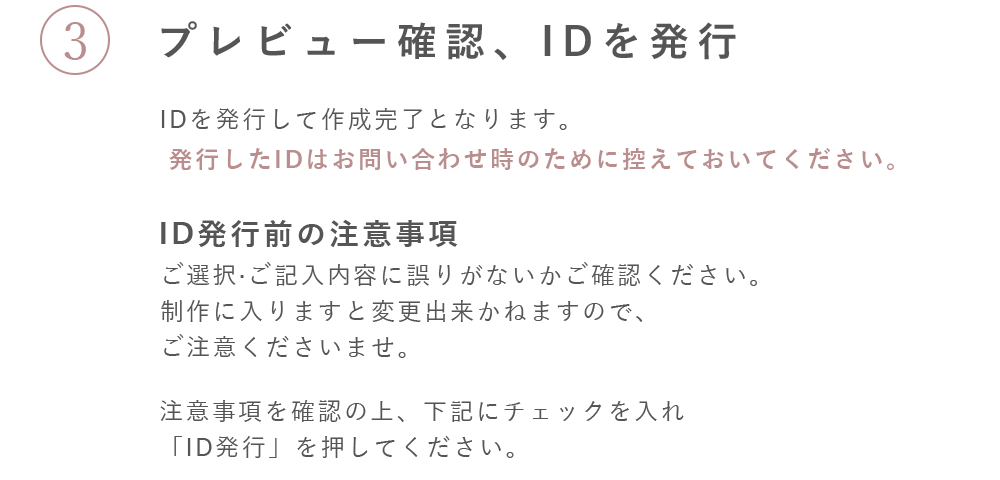 ※作成データはご注文時の「ご注文者様名」と下記にご記入いただいたお名前が同一の場合に紐づけされます。