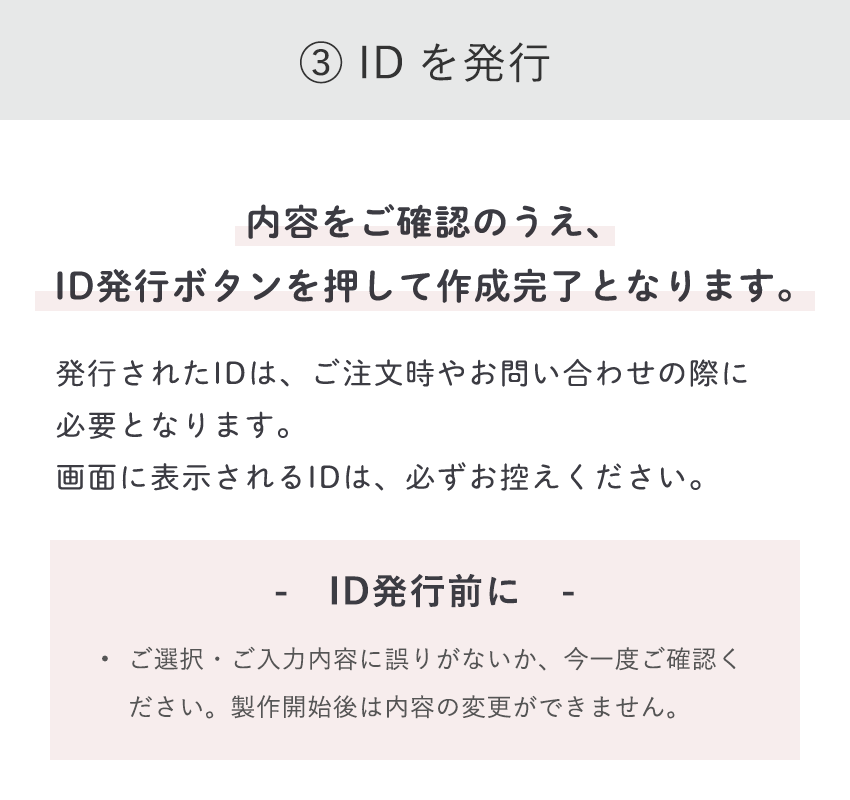 ※作成データはご注文時の「ご注文者様名」と下記にご記入いただいたお名前が同一の場合に紐づけされます。